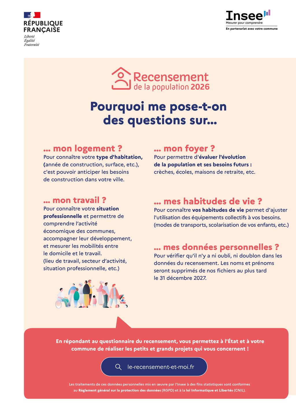 Nous vous rappelons que le recensement est obligatoire (loi n°51-711 du 7 juin 1951) et qu’il s’agit d’un outil indispensable pour la gestion de notre commune.
